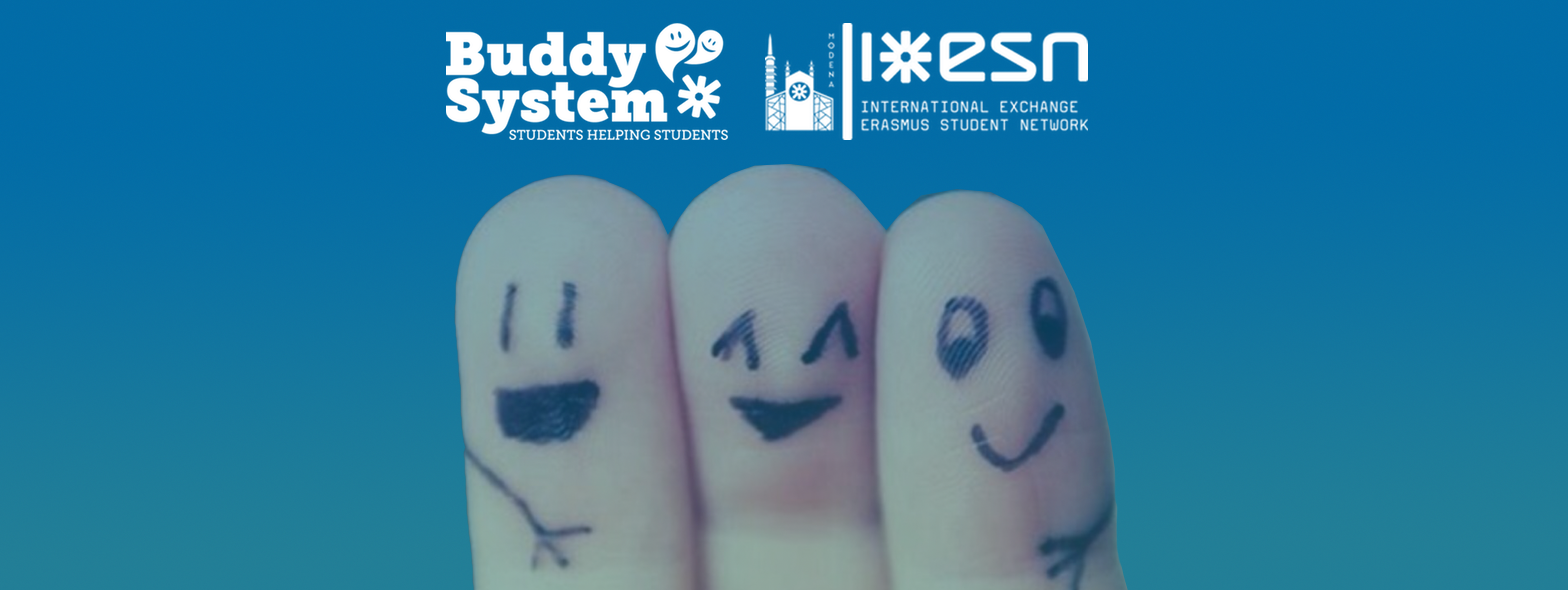 Il Buddy System è un progetto nato con lo scopo di far integrare e far sentire a casa gli studenti internazionali sin dai loro primi giorni a Modena o Reggio Emilia. Ogni Erasmus può far richiesta per ricevere un tutor - il Buddy - che si occuperà di rispondere alle sue domande, di chiarire i suoi dubbi e che lo aiuterà a muovere i primi passi nella nuova città.