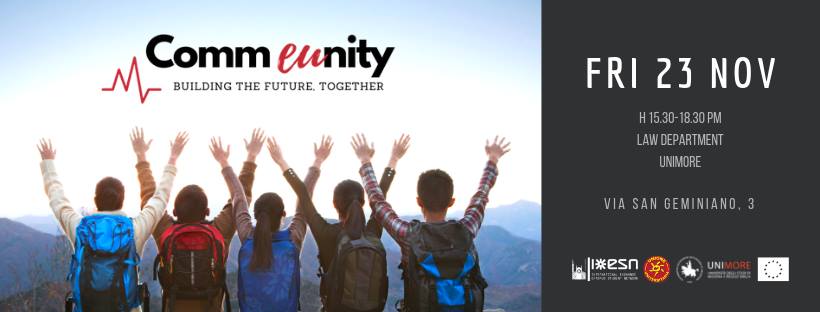Vi invitiamo quindi venerdì 23 novembre al Dipartimento di Giurisprudenza (via San Geminiano 3) dalle 15: 30 alle 18:30, per un pomeriggio in cui vogliamo essere europei tutti insieme. Perché vi vogliamo con noi?